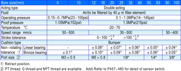 Bronze sliding bearing: it is suitable for the action that has radial load resistance. Compared with normal cylinder of same use, the horizontal impact resistance is doubled and it has stronger torsion rigidity.